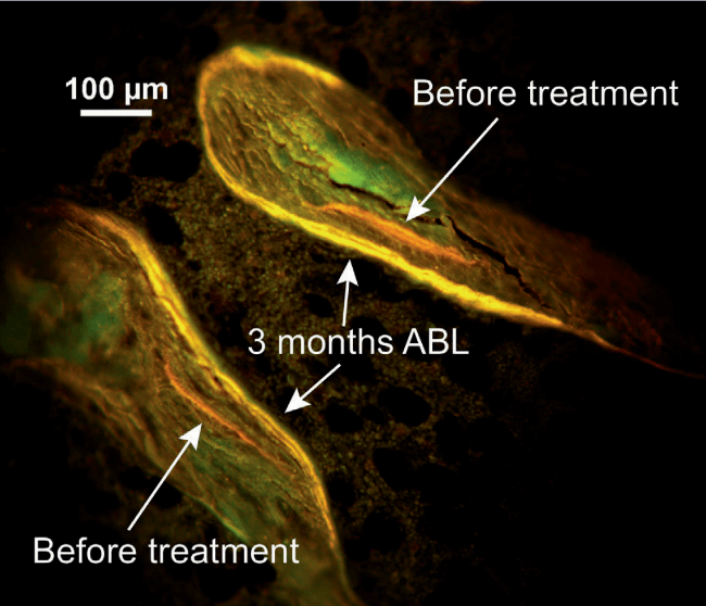 Illustrates the increases in mineralizing surface in cancellous bone with abaloparatide (ABL) treatment.